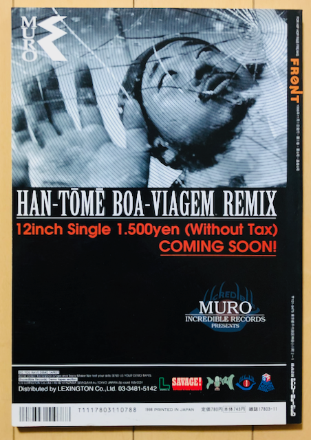 裏表紙はこんな感じ、MURO”HAN-TOME”(BOA-VIAGEM REMIX)の12″の広告!